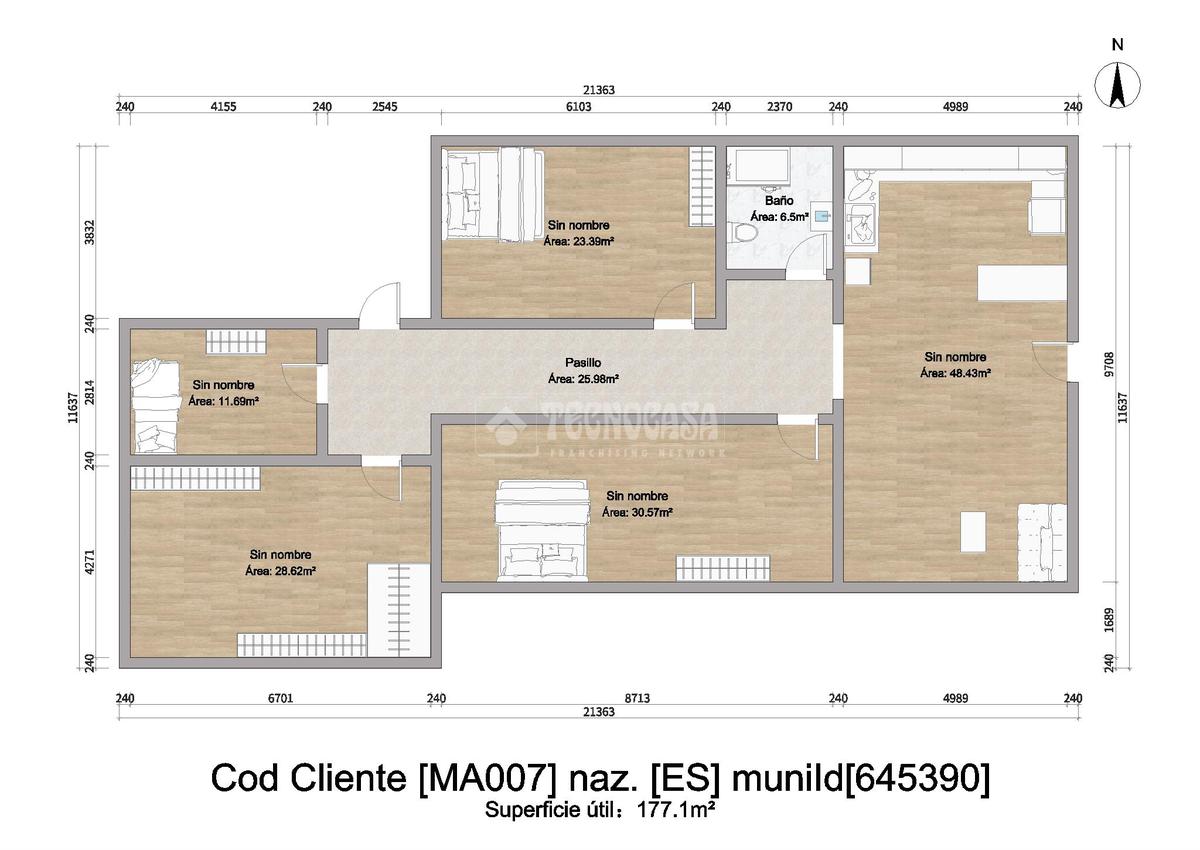 La distribución interior se completa con un baño completo, equipado para cubrir las necesidades diarias, y tres habitaciones que ofrecen espacio suficiente para descanso y privacidad. Además, cuenta con una estancia adicional destinada a vestidor, proporcionando un espacio extra para almacenamiento y organización personal.