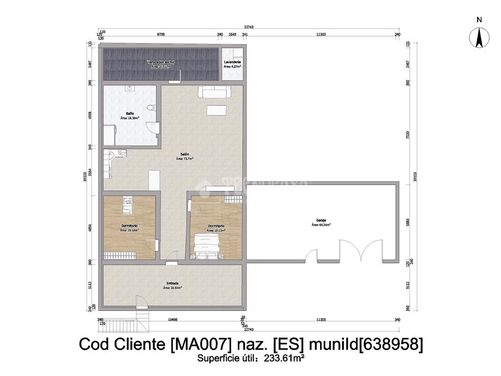 Al ingresar a la vivienda, nos encontramos con un pasillo que distribuye hacia las dos habitaciones, ambas muy luminosas y con ventanas al exterior, proporcionando un ambiente agradable y confortable. Al final del pasillo, se encuentra un amplio salón abierto a la cocina, decorado con un bonito arco que realza la estética del espacio, además de una barra americana que facilita la interacción y la convivencia.